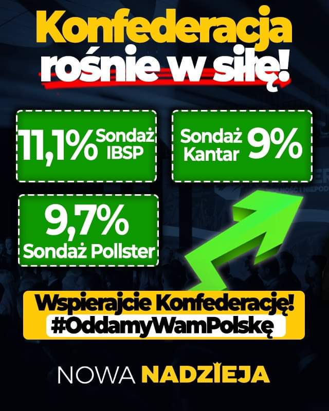 Najciekawszy jednak może wydawać się wynik Konfederacji, która od kilku miesięcy regularnie zyskuje w każdym sondażu. Stare przysłowie mówi,"gdzie dwóch się bije, tam trzeci korzysta" i tym razem wiele wskazuje na to, że może być podobnie. Do rozstrzygnięć zostało jeszcze dużo czasu, niemniej jednak możemy mieć "czarnego konia" tej kampanii.